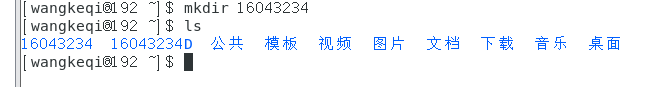(2)在用户主目录(家目录)下面创建一个以自己学号命名的目录并查看是否创建成功