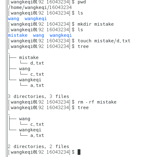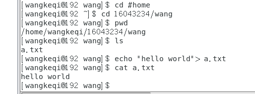 (3)进入以自己学号命名的目录,查看当前目录,然后创建以自己姓名拼音命名的目录