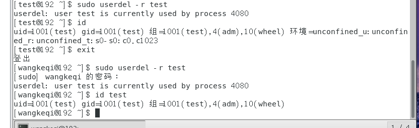 (3) 创建两个账号,一个账号为test,另外一个账号以大写E开头加上你自己学号尾数4位,两个账号分别设置密码及管理员权限,账号设置完成后,切换账号简单查看信息后,删除test账号,保留另一账号,以备后续操作。