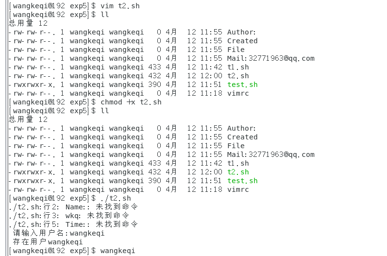 2.编写一脚本,判断输入用户名是否存在,输出结果只能是存在该用户或者不存在该用户,不能有其他数据输出。
