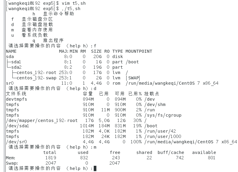 5.模拟一个多任务维护界面,当执行程序时先显示总菜单,然后进行选择后做相应的维护监控操作。