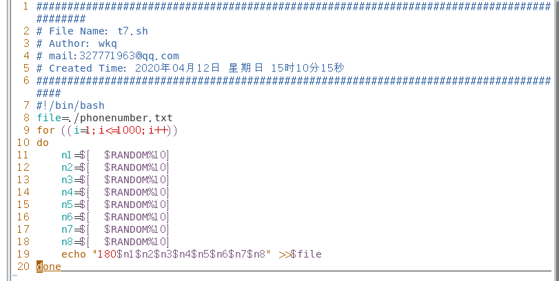 7.编写脚本,生成一个phonenumber.txt文件,文件内容为随机产生以139开头的手机号1000个,每个手机号占一行。