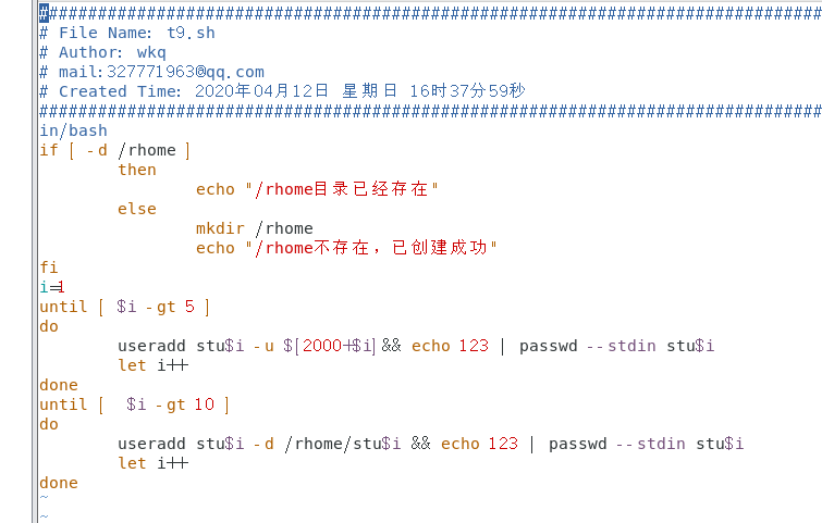 9.使用 until 语句批量创建10个用户,要求 stu1-stu5 用户的 UID 分别为 2001-2005 , stu6-stu10 用户的家目录分别在 /rhome/stu6-/rhome/stu10