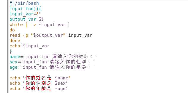 10.编写脚本收集用户输入的基本信息(姓名,性别,年龄),如果用户不输入一直提示用户输入,最后根据用户输入的信息输出相应的内容。