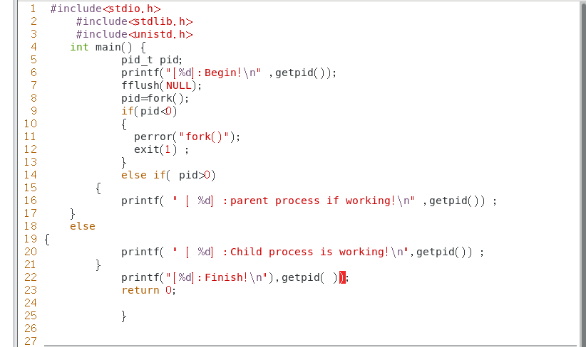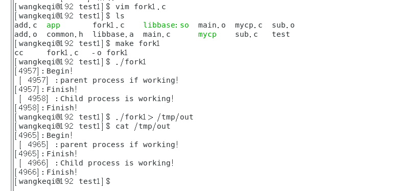 4. 使用fork创建一个子进程,进程创建成功后父子进程分别输出不同的内容。