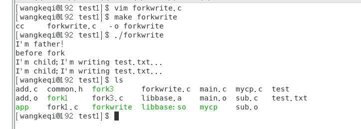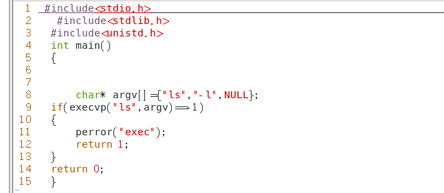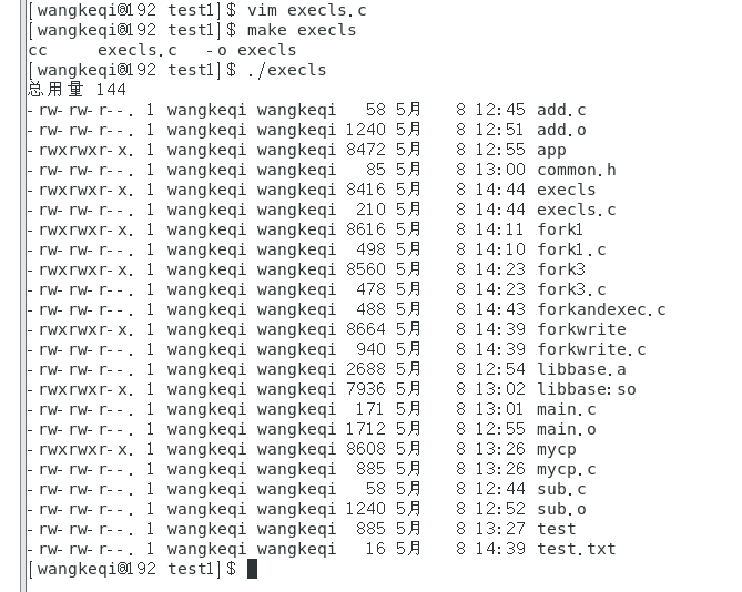 7.分别在主函数中使用execvp启动ls命令以及使用fork函数产生子进程调用execvp启动ls。