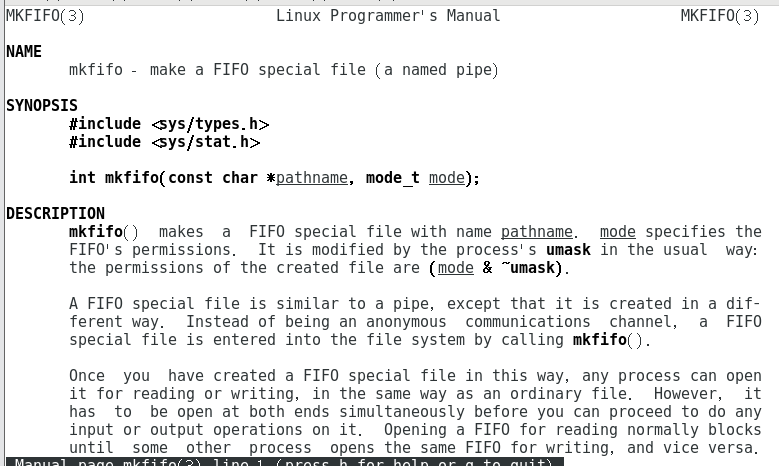 当进程使用 pipe 函数,就可以打开位于内核中的这个特殊“文件”。同时 pipe 函数会返回两个描述符,一个用于读,一个用于写。如果你使用 fstat 函数来测试该描述符,可以发现此文件类型为 FIFO 。而无名管道的无名,指的就是这个虚幻的“文件”,它没有名字。