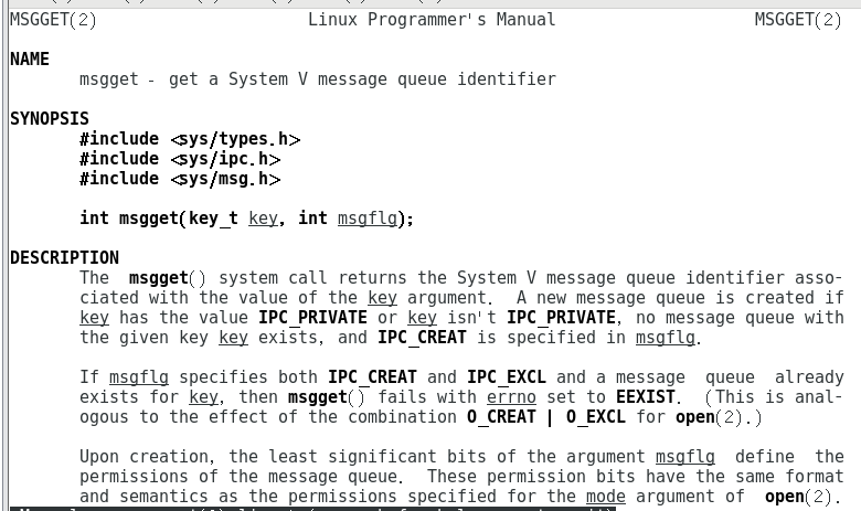 int id = msgget(0x8888, IPC_CREAT | IPC_EXCL | 0644);