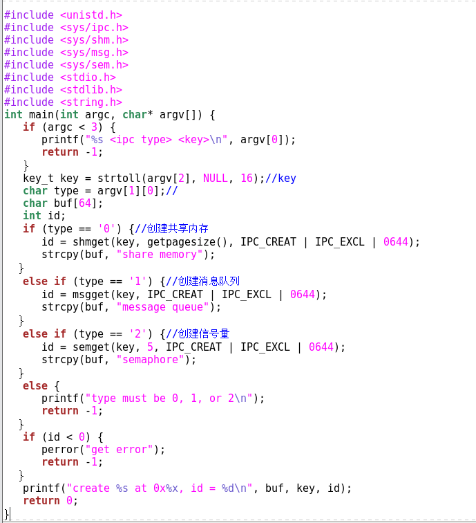 例题:程序 ipccreate 用于在指定的键值上创建 ipc 内核对象。使用格式为 ./ipccreate ,比如