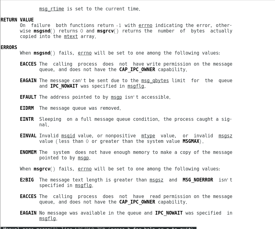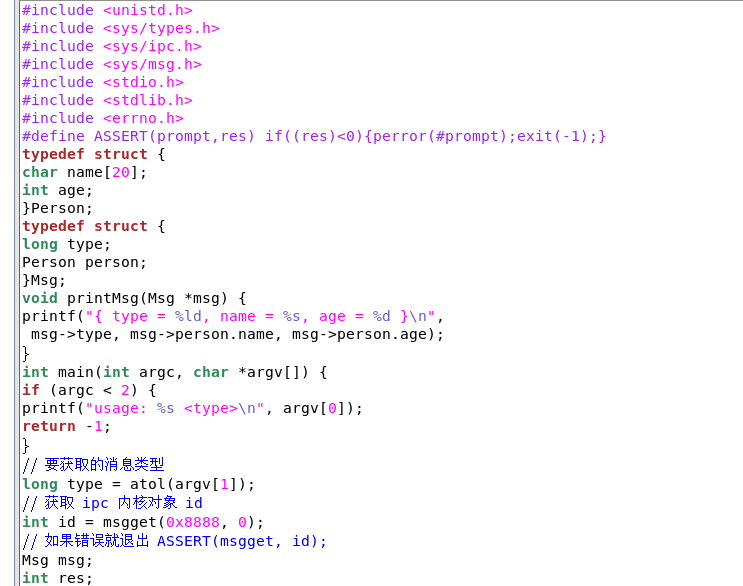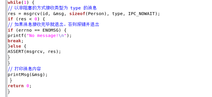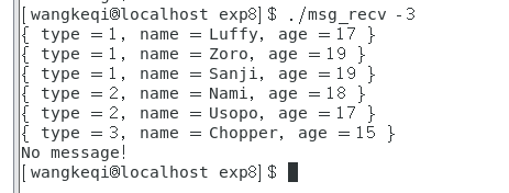 msg_recv 程序接收一个参数,表示接收哪种类型的消息。比如 ./msg_recv 4 表示接收类型为 4 的消息,并打印在屏幕。