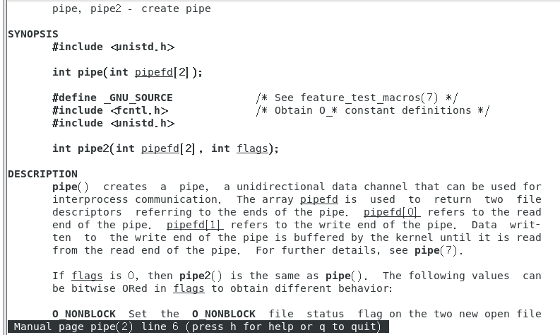 式打开的描述符。也就是说, pipefd[0] 是用于读的,而 pipefd[1] 是用于写的。
