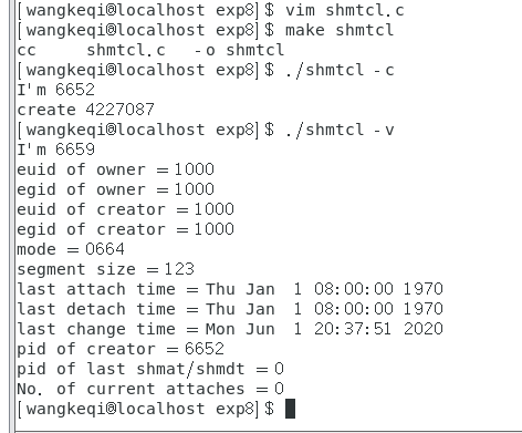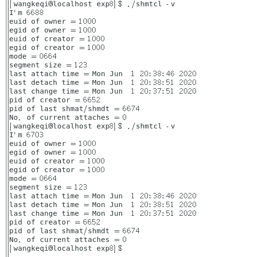 先在另一个终端执行 ./shmctl -a ,然后在当前终端执行 ./shmctl -v (注意手速,5秒内要搞定)。