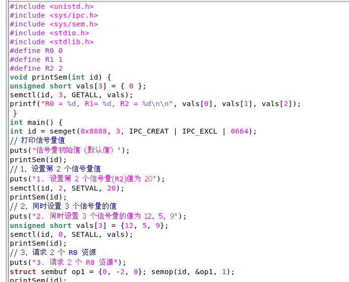 int id = semget(0x8888, 1, IPC_CREAT | IPC_EXCL | 0644);// 第二个参数表示创建 几个信号量