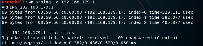列:arping -i eth0 -c 3 IP地址 (没有图 我没有多网卡 nikin你ca )