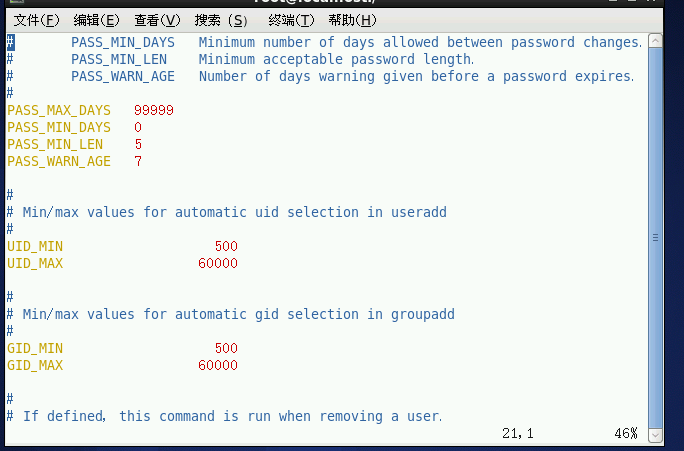 vim /etc/login.defs