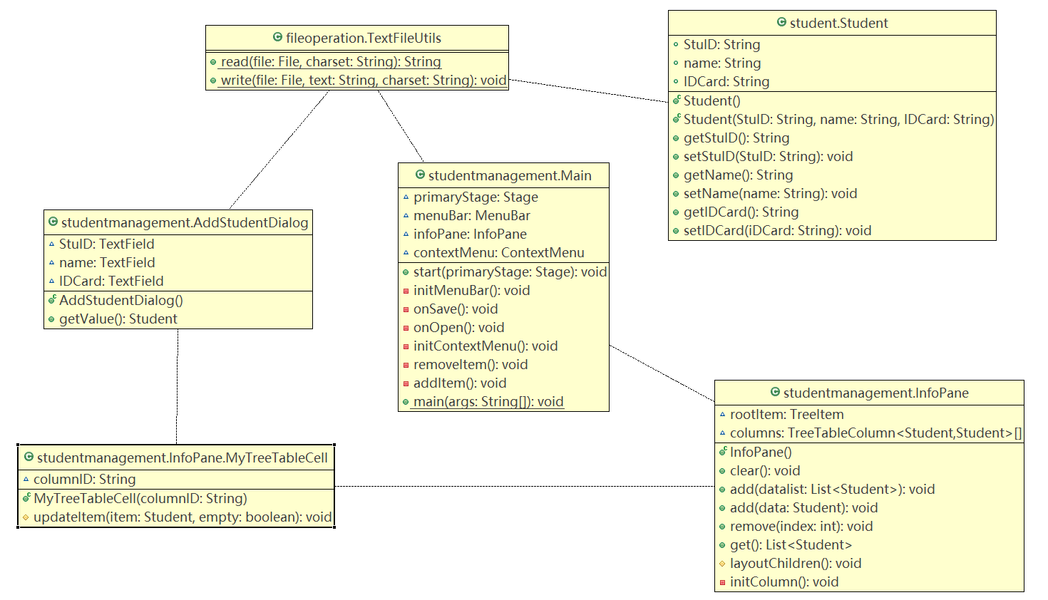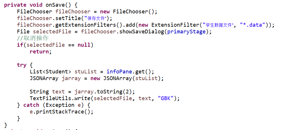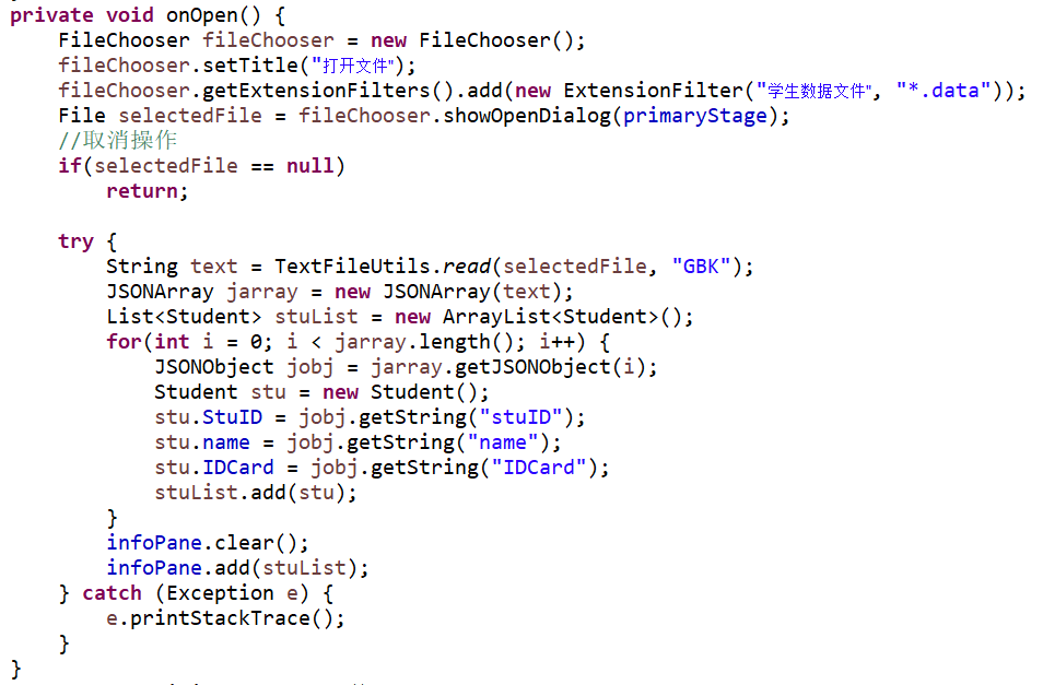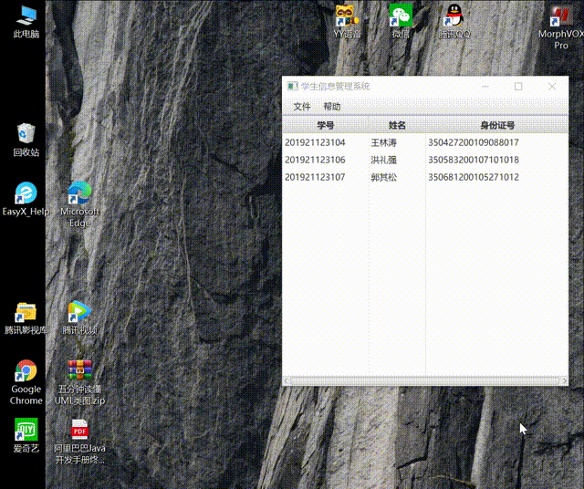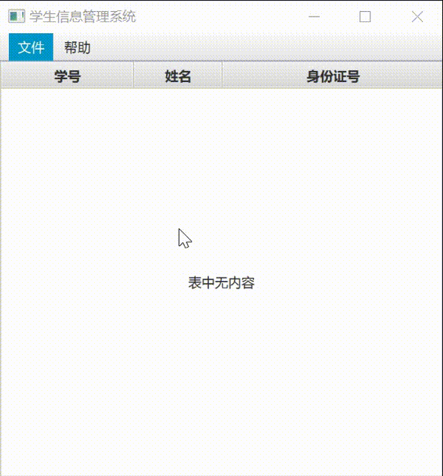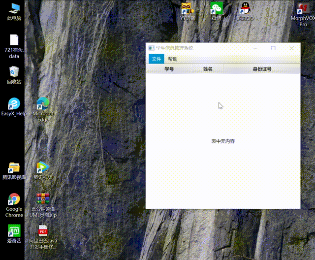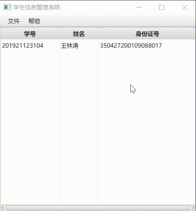 通过eclipse运行,使用JavaFX设计GUI界面,该学生信息管理系统能够打开已有的文件,对表格中的数据进行添加新的学生和删除学生,还能将进行的操作通过保存功能保存在文件中进行储存。