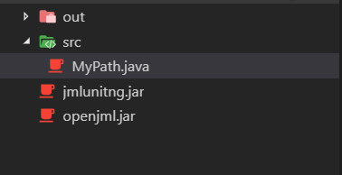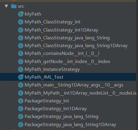 出现很多java文件和class文件,但是当我们运行时会出现无法找到主类的错误,这时候我们可以将这些java文件复制到idea中,在idea中运行MyPath_JML_Test即可,需要注意的是,要将jmlunitng.jar文件添加到项目中。