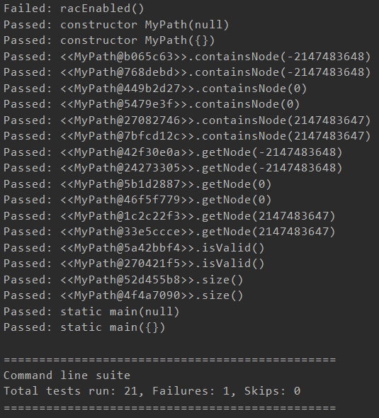 1 java -jar .\jmlunitng.jar .\src\MyPath.java 2 javac -cp .\jmlunitng.jar .\src\*.java 3 java -jar .\openjml.jar -rac .\src\MyPath.java
