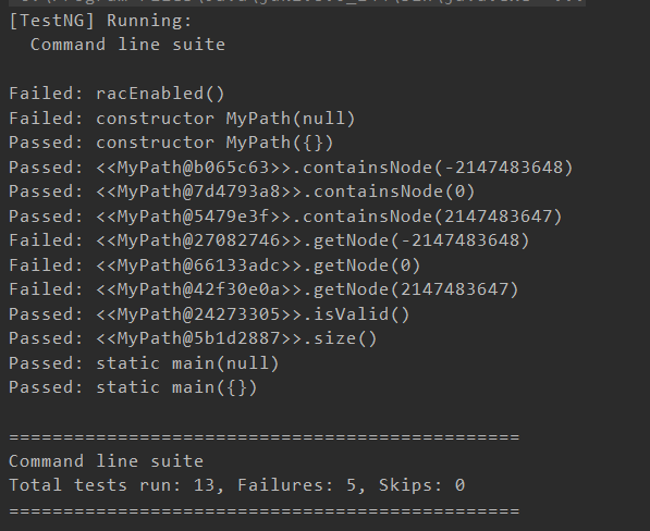 其中我们发现getNode方法出现的问题,虽然我们有requires,但是工具似乎并没有理我们,依旧出现了负数之类的测试。然后我们对这些方法进行了一些修改,得到了如下的结果:
