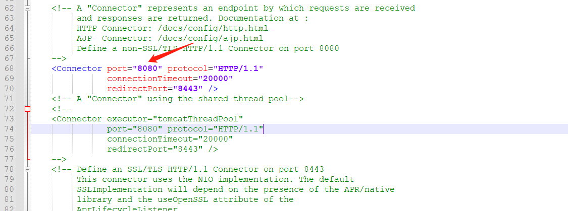 tomcat默认端口号:8080