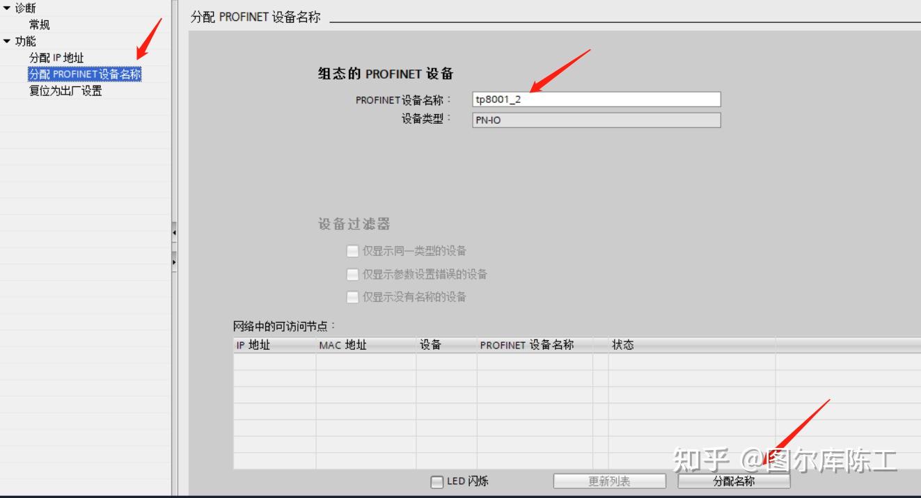 双击“分配 PROFINET 设备名称”,填写“PROFINET 设备名称”,点击“分配名称”