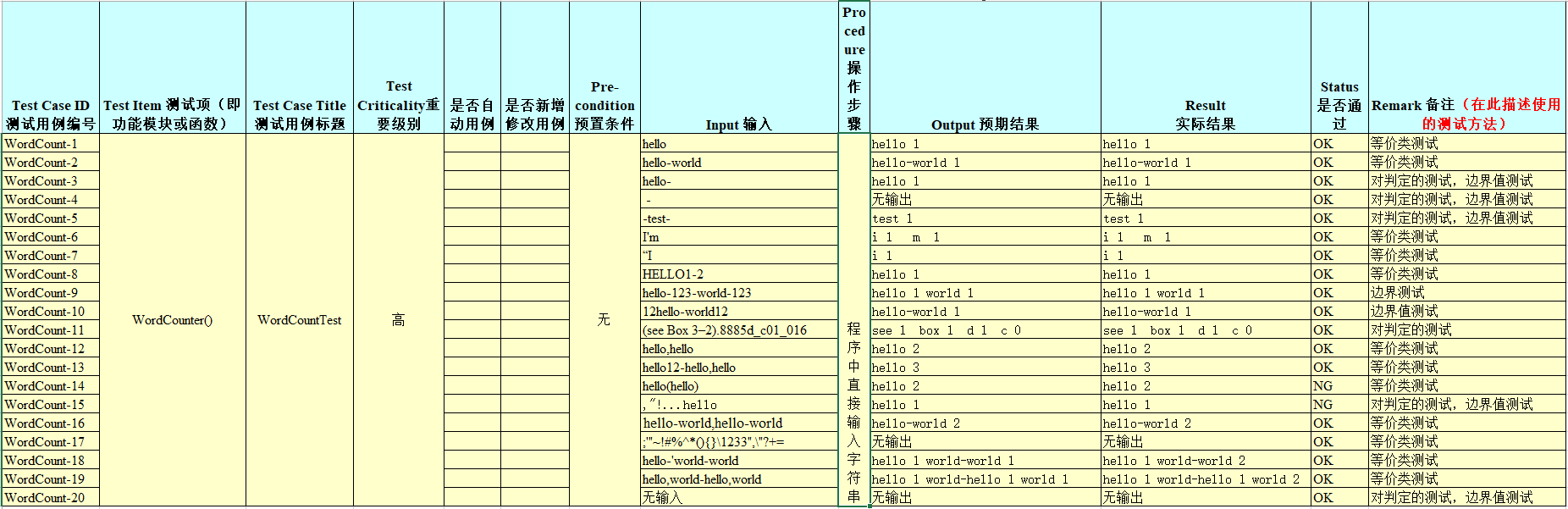 所以针对一般情况,以及几种具体说明的典型情况设计了测试用例,详情见下表