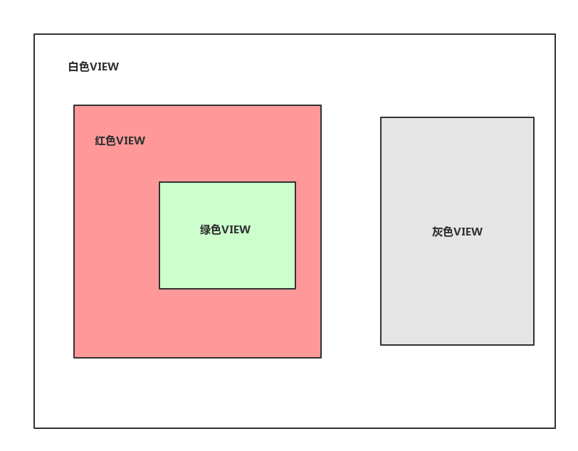 当点击绿色控件时,Touch事件经队列传递到UIApplication,此时判定windos中是否不能接受事件,能接受将事件传递到白色控件,此时白色控件接着进行判定:自身是否不能接受事件、触碰点是否在自身身上。并且遍历自身子控件(红色控件、绿色控件)进行同样的判定操作,直到找到合适的控件(绿色控件)为止。
