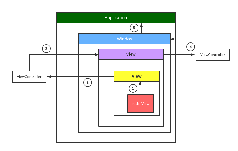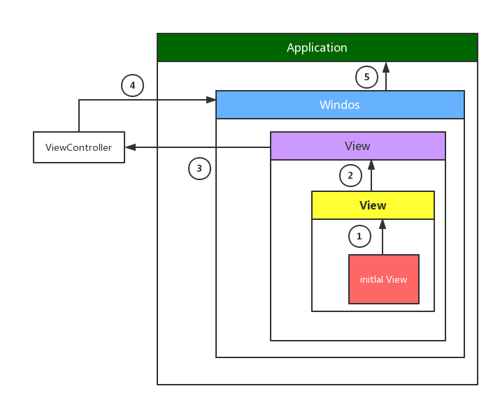 Touch - > UIApplication - > WIndos - > UIView - > Initlal View