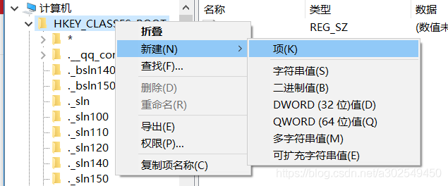 2.找到HKEY_CLASSES_ROOT键,寻找子键.cpp,若没有则需要新建一个项