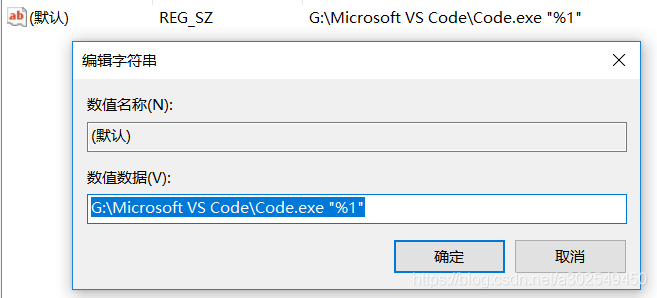 7.项"command"的默认的数值数据为该类型默认打开方式的程序的路径,路径后要加上“"%1"”,表示鼠标双击时用该程序打开.cpp文件