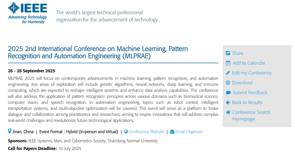 MLPRAE 2025已上线IEEE官网,https://conferences.ieee.org/conferences_events/conferences/conferencedetails/6726