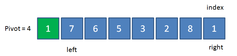 此时,left左边绿色的区域代表着小于基准元素的区域。