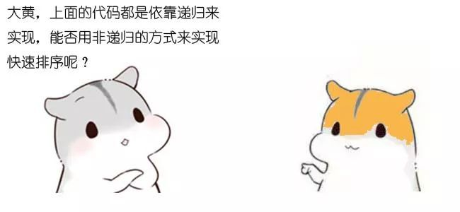 每一次循环,都会让栈顶元素出栈,进行排序,并且按照基准元素的位置分成左右两部分,左右两部分再分别入栈。当栈为空时,说明排序已经完毕,退出循环。