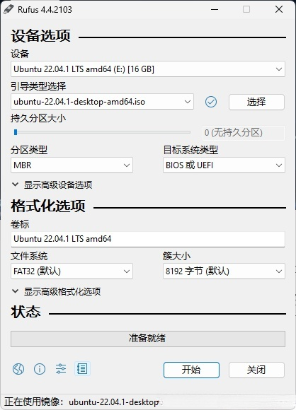 选择好映像文件之后什么都不用动,一路确定之后就是等待烧录完成。由于rufus不会自动弹出烧录完成的弹窗,有的小白可能不知道烧录完成了,这里我们只要等状态进度条跑满就好了。