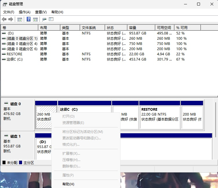 卷 0 C 这很C NTFS 磁盘分区 453 GB 正常 启动