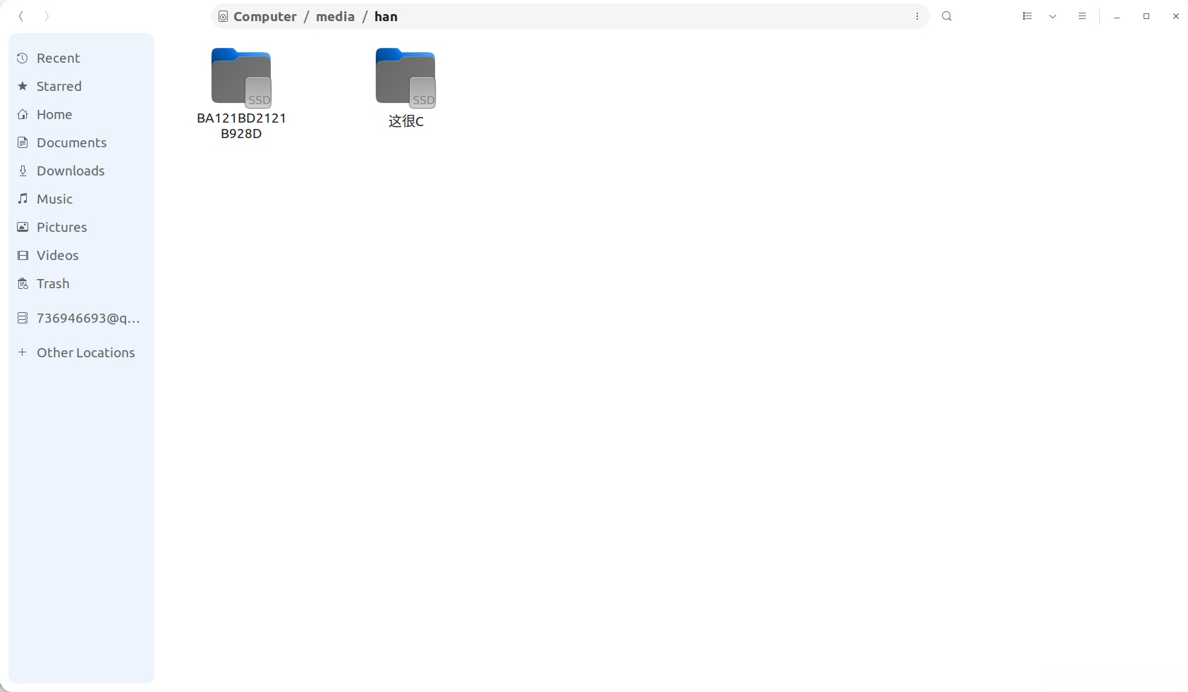 在文件管理器的其他位置,会自动地列出一些可以挂载的硬盘,只需要直接点击,就可以自动挂载硬盘并进入。