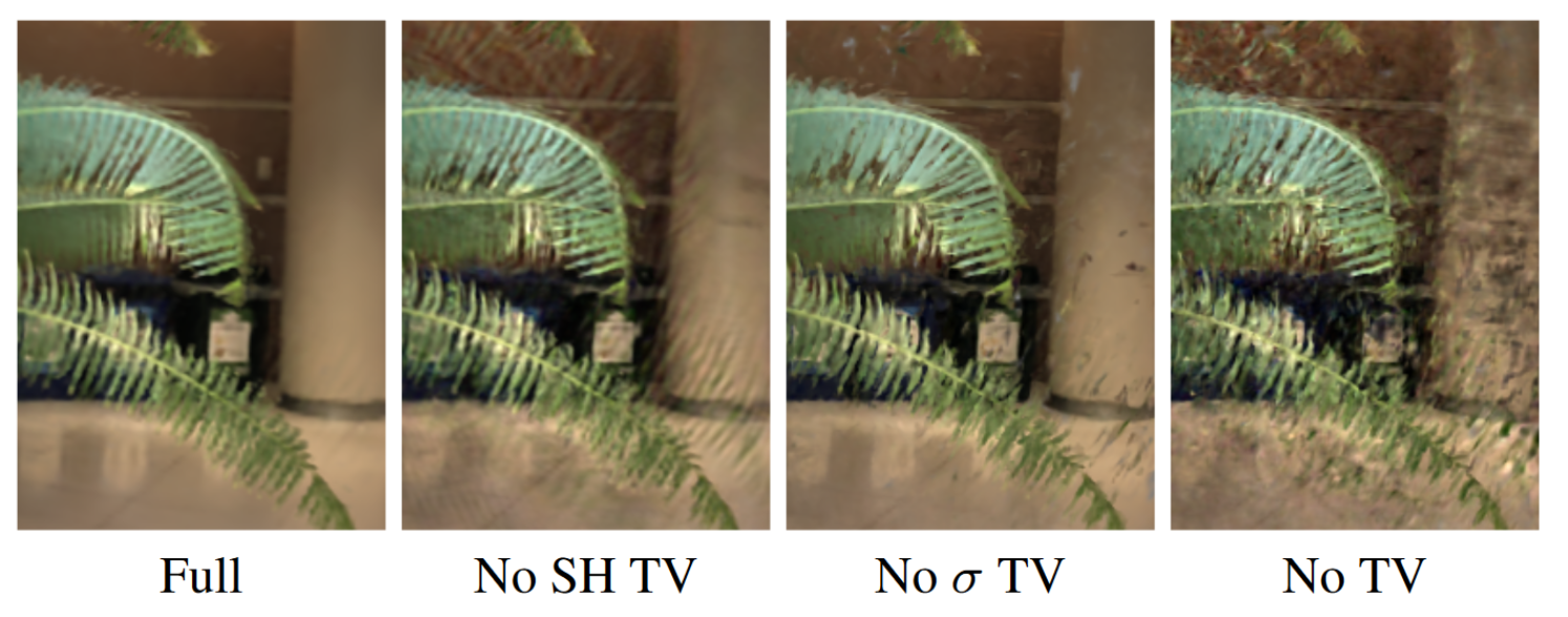 因此,Plenoxel使用全变分正则化使相邻网格的参数变得平滑。