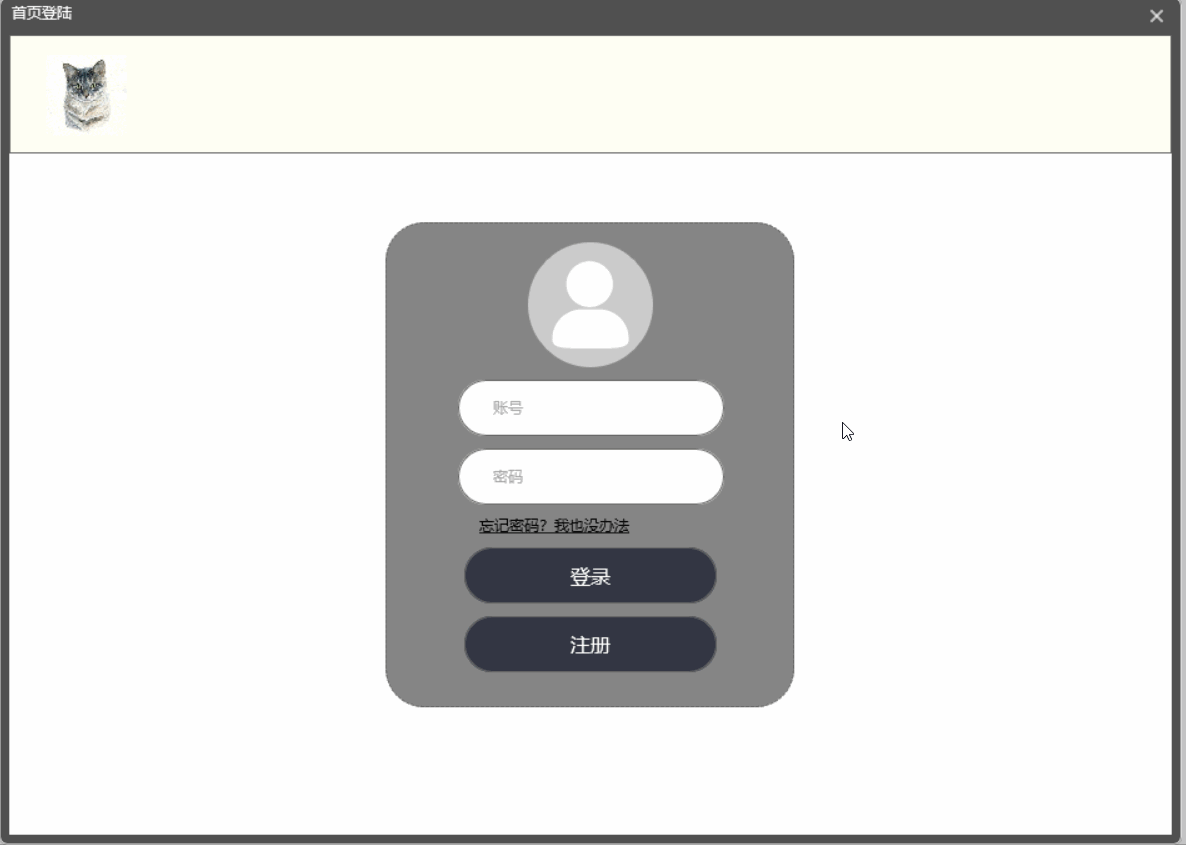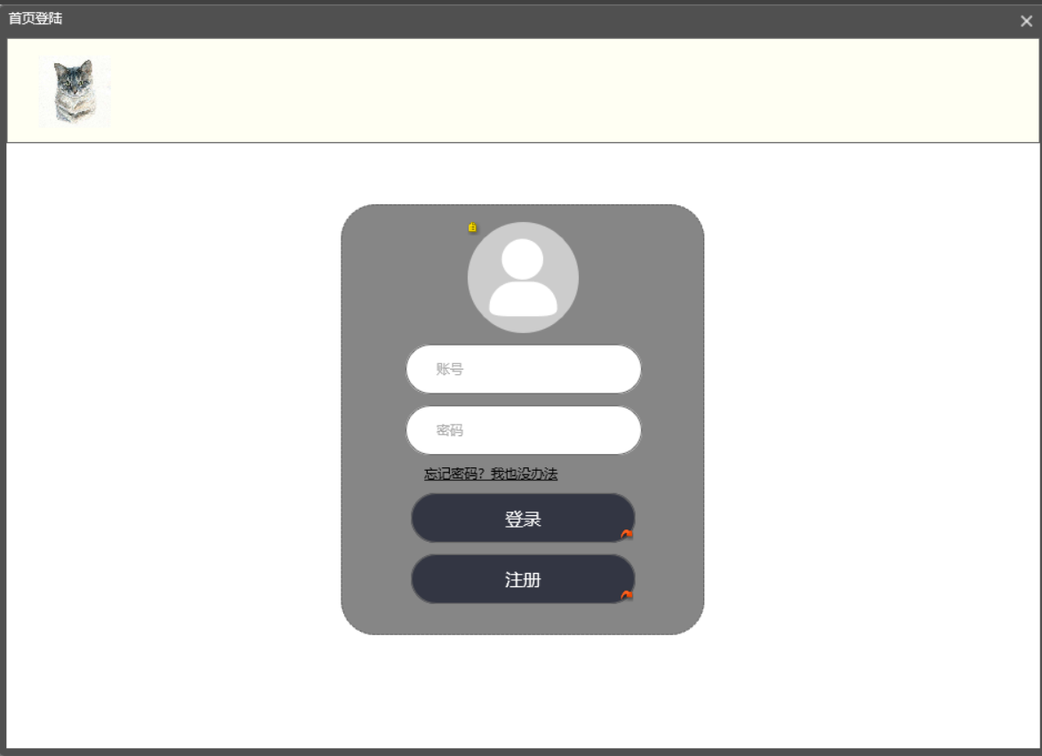 中部是用户的登录界面,是用户登入进游戏内部的入口,通过登录按钮进入主界面,通过注册按钮进入注册页面(其实不需要,后端数据库已经写入了所有人的注册信息了,但我不想删除它)