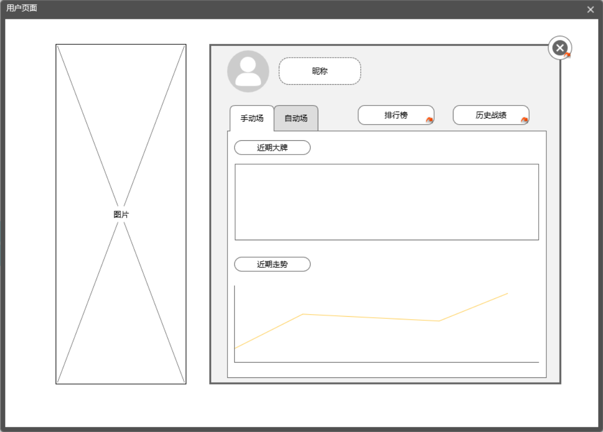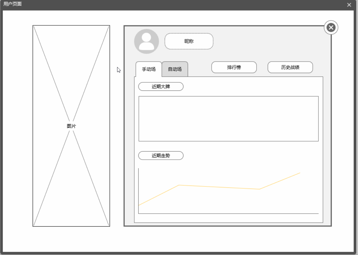 右方分别显示头像,昵称,以及近期战绩。其中近期战绩包括最近的最大牌以及胜势图。