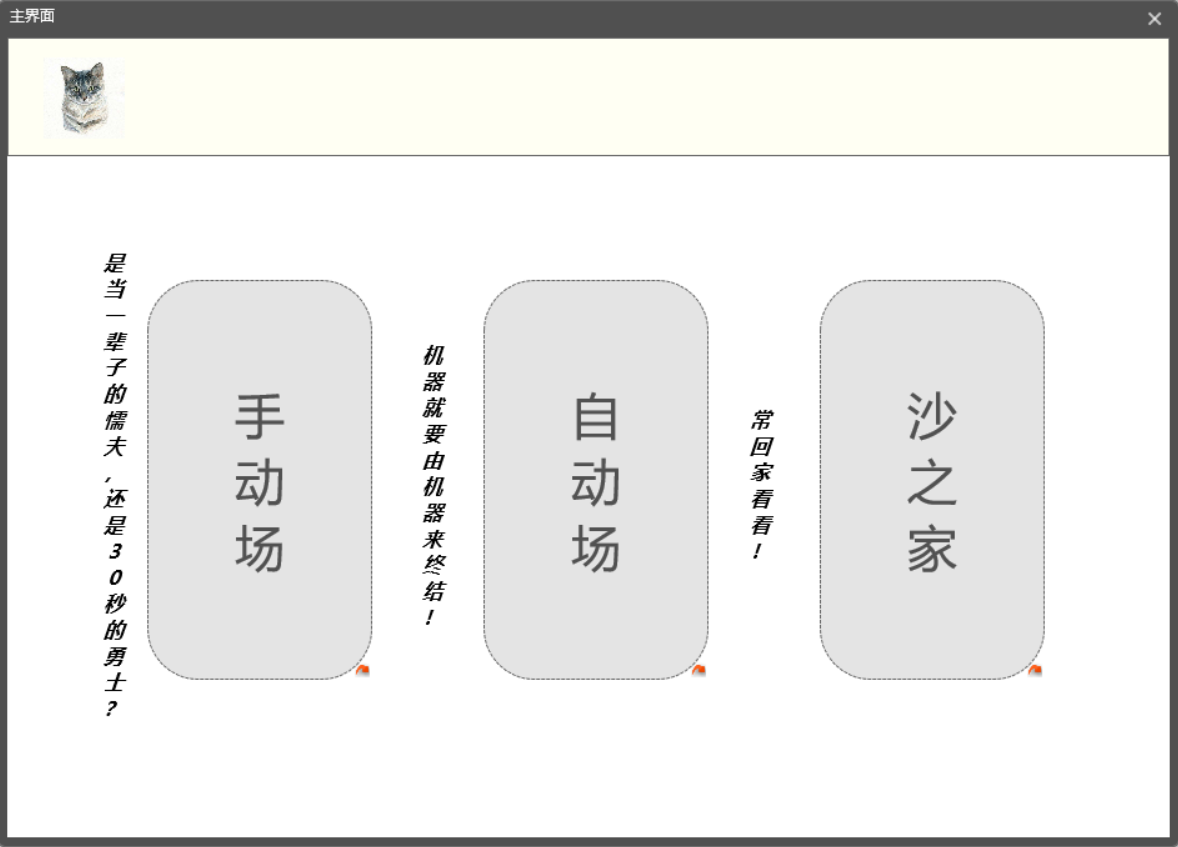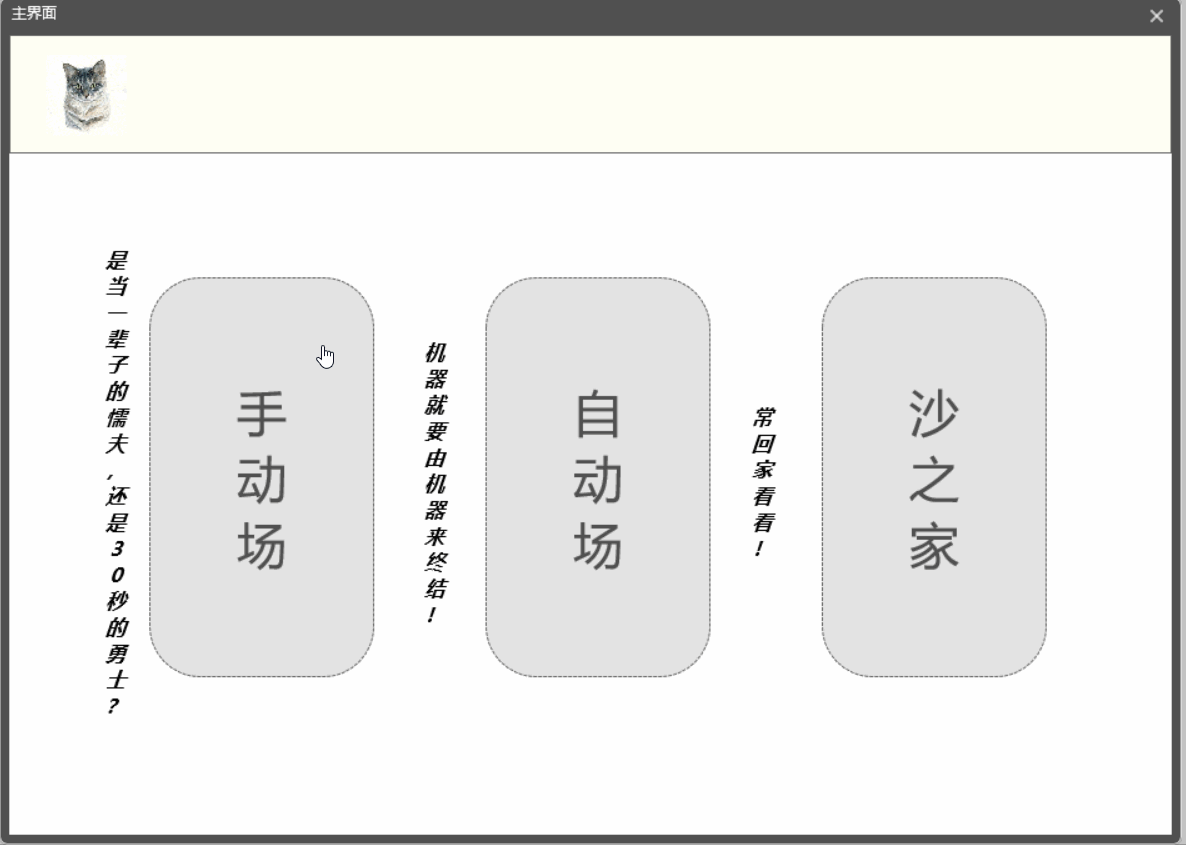好了,到了我最喜欢的吹水环节了,我再说一下,我确实不会做原型,我还是更喜欢纸和笔以及adobe全家桶;在美工方面,我只是一个无情的平面设计逗逼和插画绘制菜鸟。做的确实很简陋,还进入了审美黑洞。背景图片啥的都没做,其实主要还是觉得最后GUI也不一定有时间做出原型的效果所以原型就设计比较符合我们未来开发的效果,虽然以往也当过画饼大师,但是这次应该没画什么饼了。不过确实第一次尝试自己全程制作原型,还是蛮多体验的。像这样写博客往电脑面前一坐就一个晚上,屁股都疼。马上国庆了,祝大家节日快乐吧!