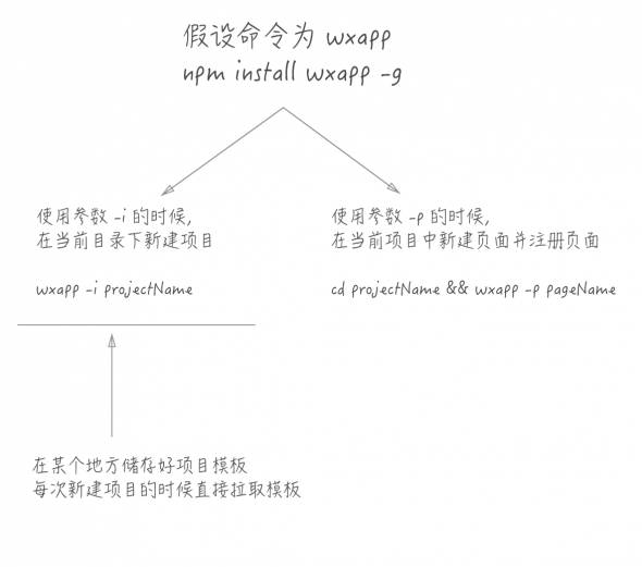 这两个需求其实很简单,不需要 GUI,所以我们可以做一个 npm 命令行工具。想象一下这个命令行用起来应该是什么样的呢: