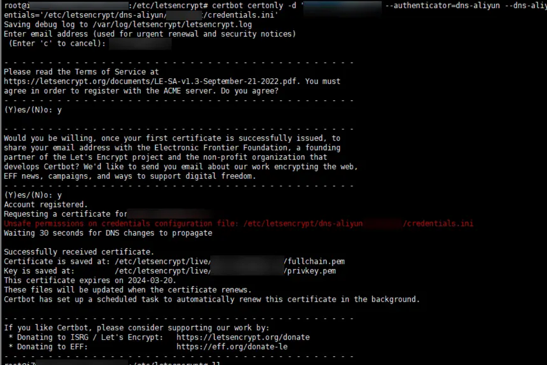 说明:会自动安装证书并对/etc/nginx/nginx.conf中的证书进行替换