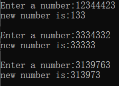 #include <stdio.h> #include <math.h> int main(){ long x; int y,z,i; printf("Enter a number:"); while (scanf("%ld",&x)!=EOF) { i=0,y=0; while (x!=0) { z=x%10; if (z%2!=0) { y=pow(10,i)*z+y; i+=1; } x=x/10; } printf("new number is:%d\n",y ); printf("\nEnter a number:"); } }