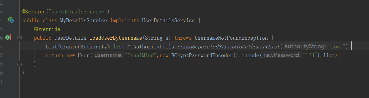 实现UserDetailsService接口,实现loadUserByUsername方法