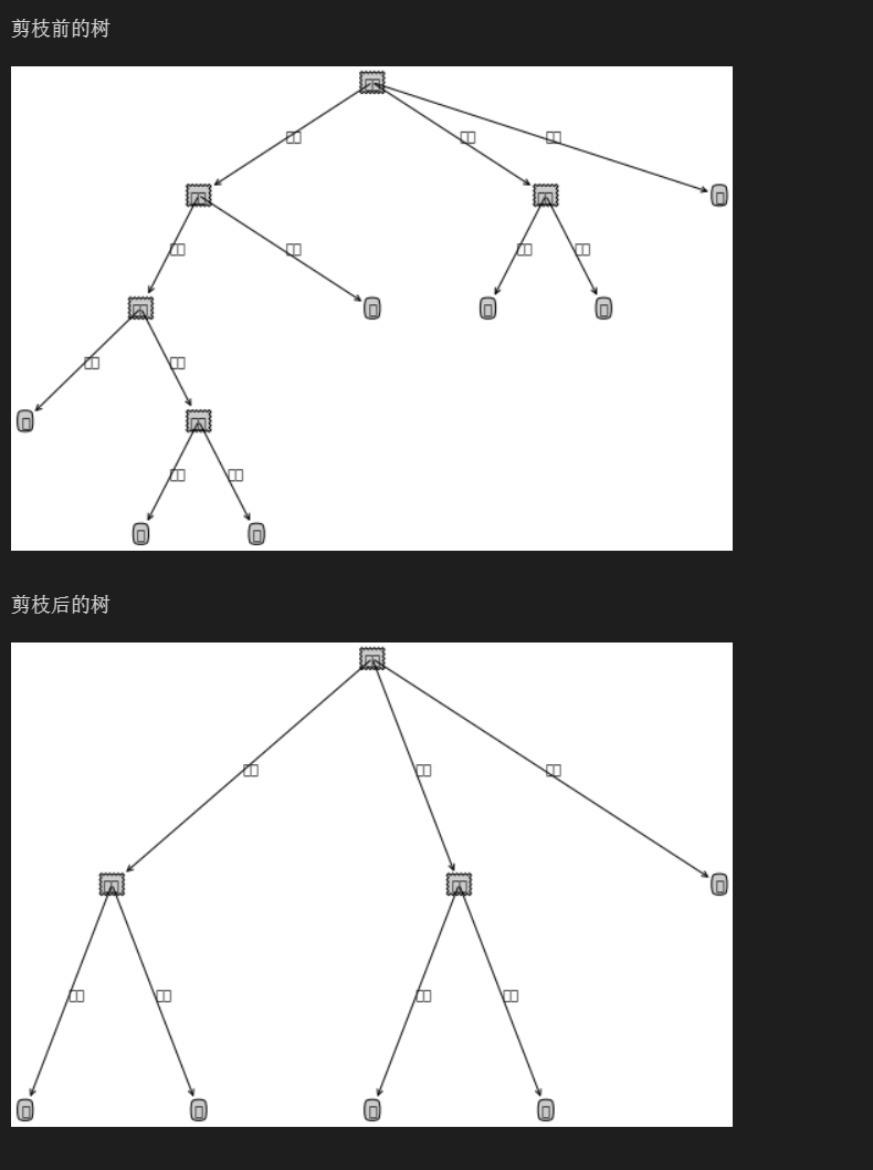 二.剪枝又分为两个方案:预剪枝和后剪枝。