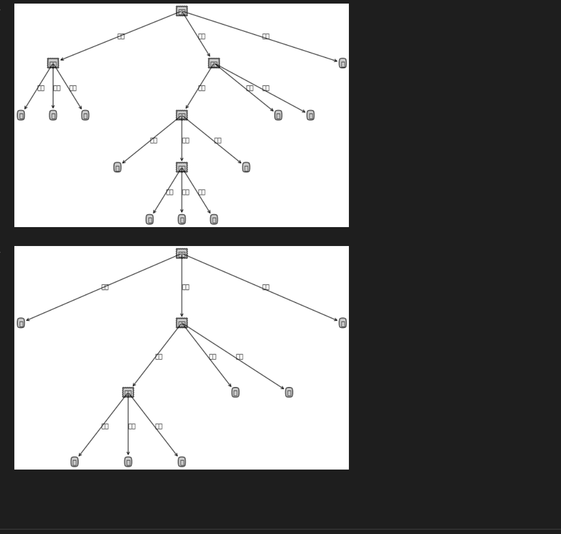 # print("当前节点属性 {0} 的子节点:{1}".format(featValue ,str(featValueDict[featValue])))