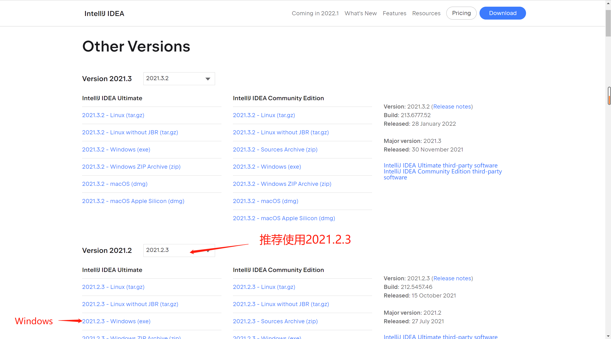 Other Versions - IntelliJ IDEA (jetbrains.com)