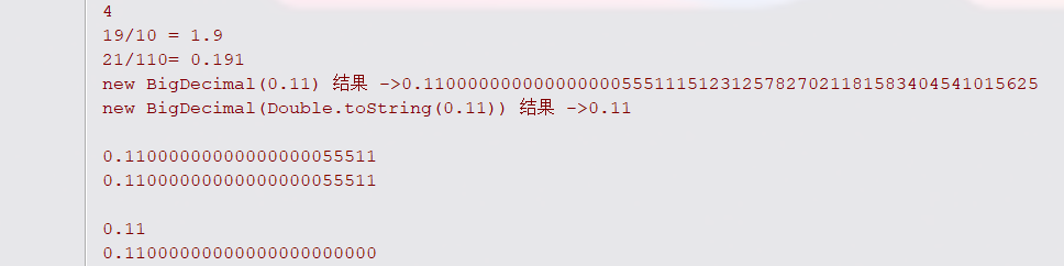 System.err.println("new BigDecimal(Double.toString(0.11)) 结果 ->"+new BigDecimal(Double.toString(0.11)));