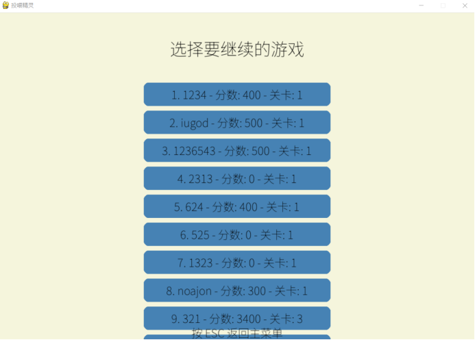 如果中途不想继续可以按esc退出,游戏会保存退出时的状态