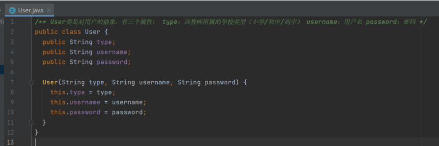 User类是对用户的抽象,有三个属性: